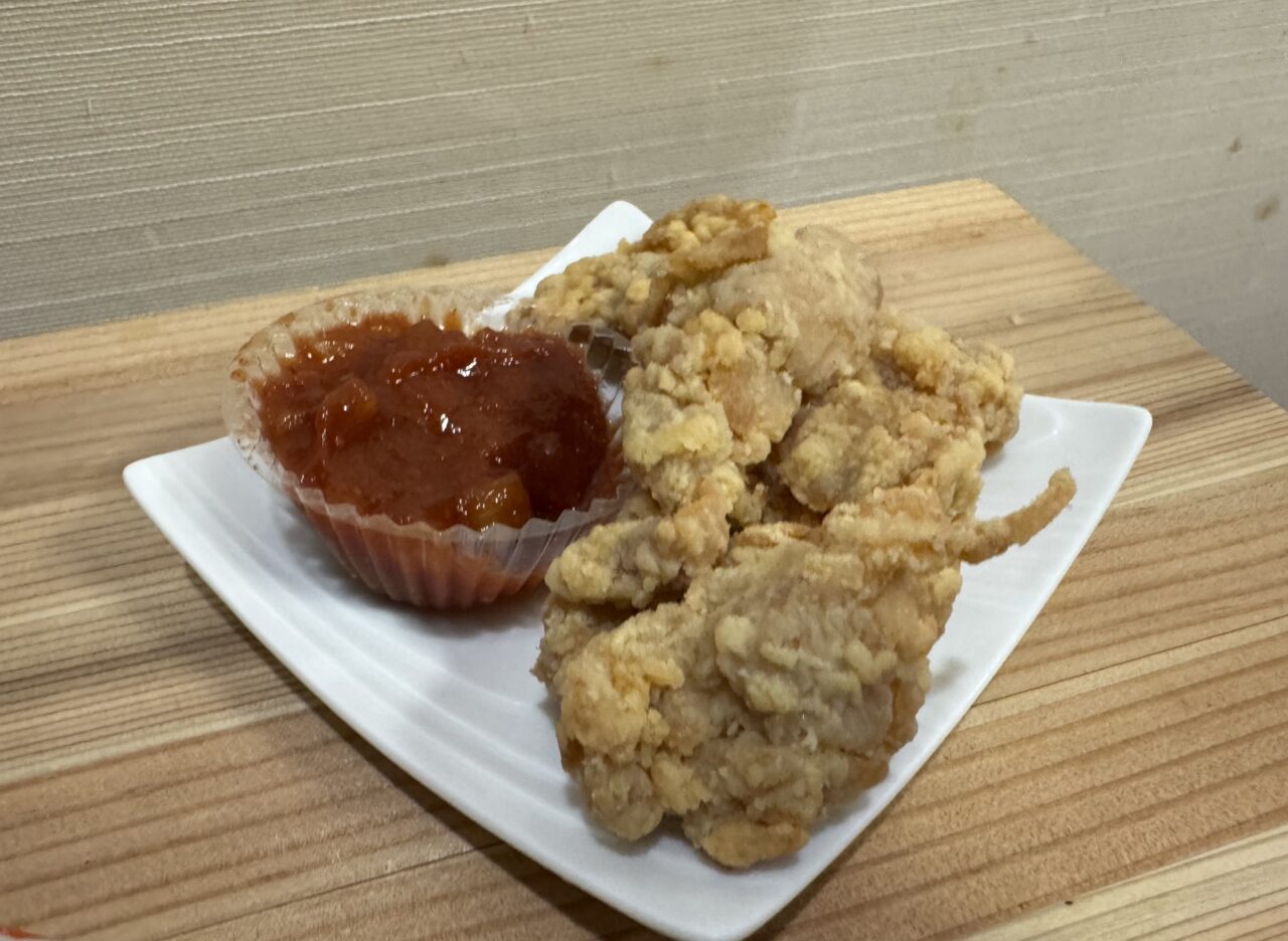 3センチ位の小さめの唐揚げが詰まっていますので、サイズ的にはお子様にピッタリで、楊枝で刺して食べやすいです。