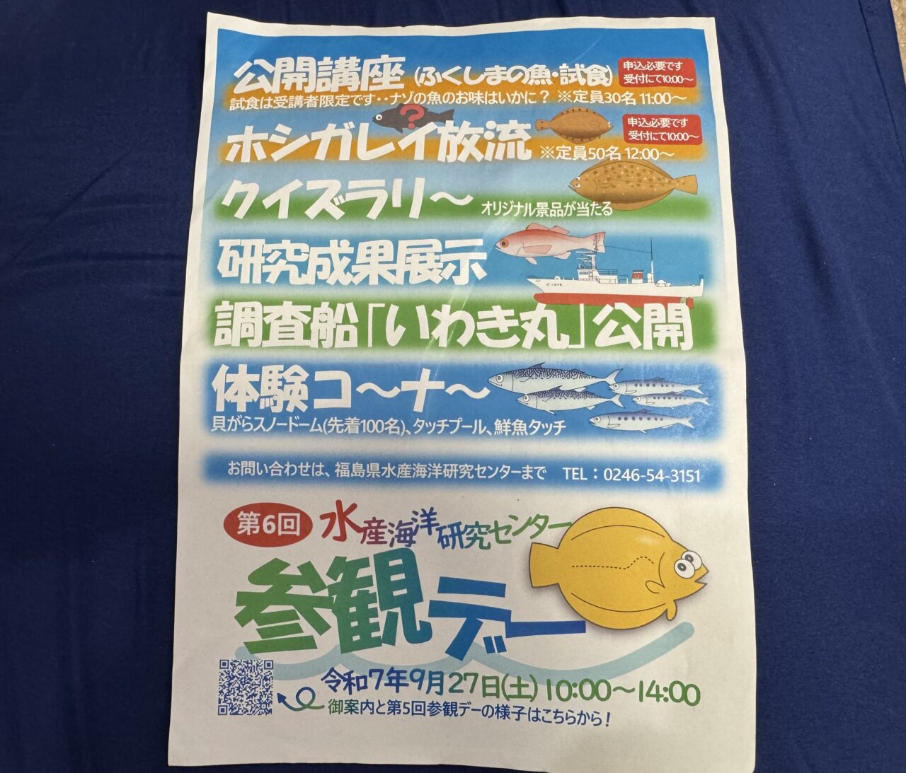 ふくしまの魚を見て、さわって、食べる素敵なイベント、第6回水産海洋研究センター参観デーが、2025年9月27日に開催されます。