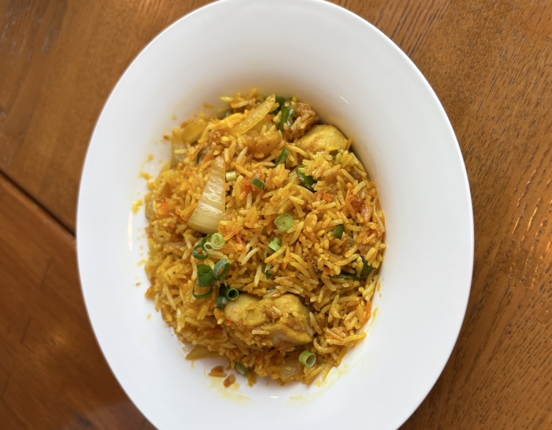 いわきであまり見かけないビリヤニも、スパイスが香り、鶏肉などの具材と合わさって美味しい。