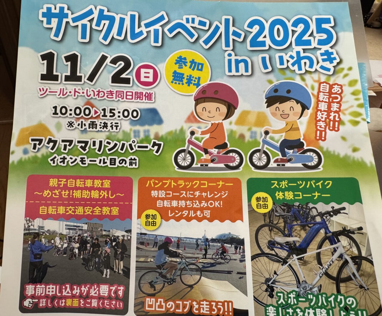 2025年11月2日、アクアマリンパークにて、サイクルイベント2025inいわきが開催されます。