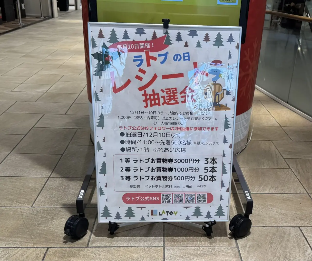 二つ目は、毎月10日に開催されています、ラトブの日レシート抽選会。
