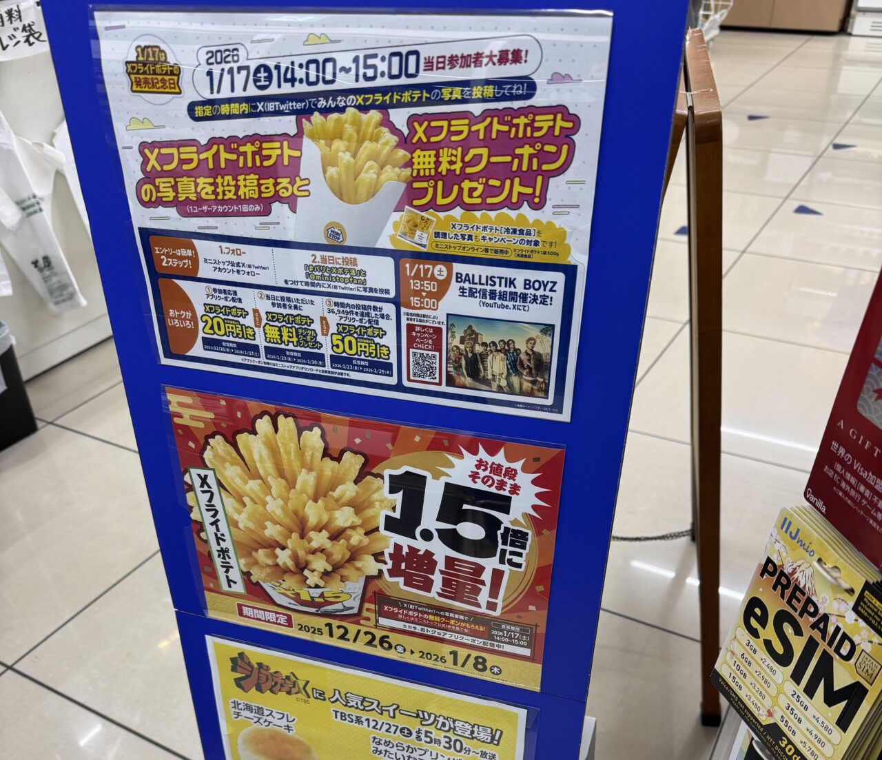 2025年12月26日から2026年1月8日まで開催中の、Xフライドポテト1.5倍増量セール。