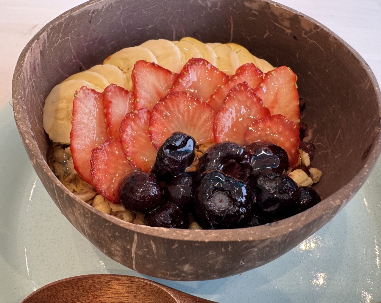アサイーボウルは、いちご、バナナ、ブルーベリーが乗ったものがスタンダードです。