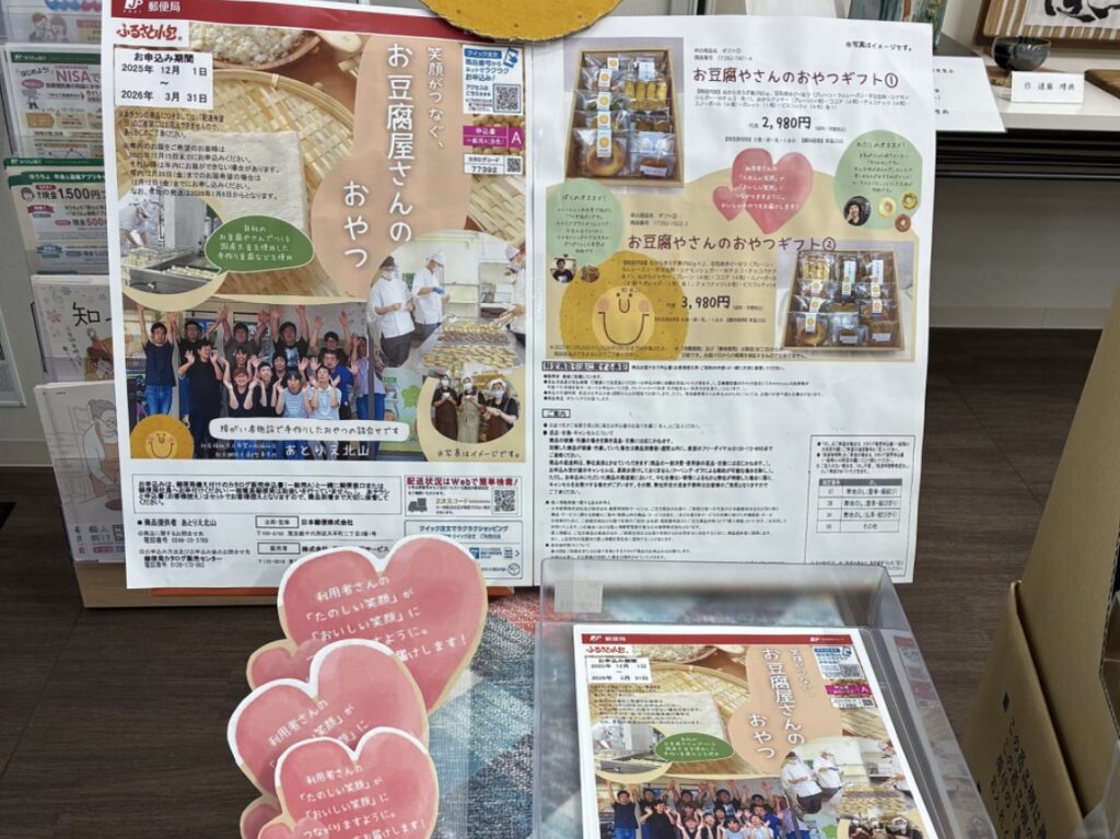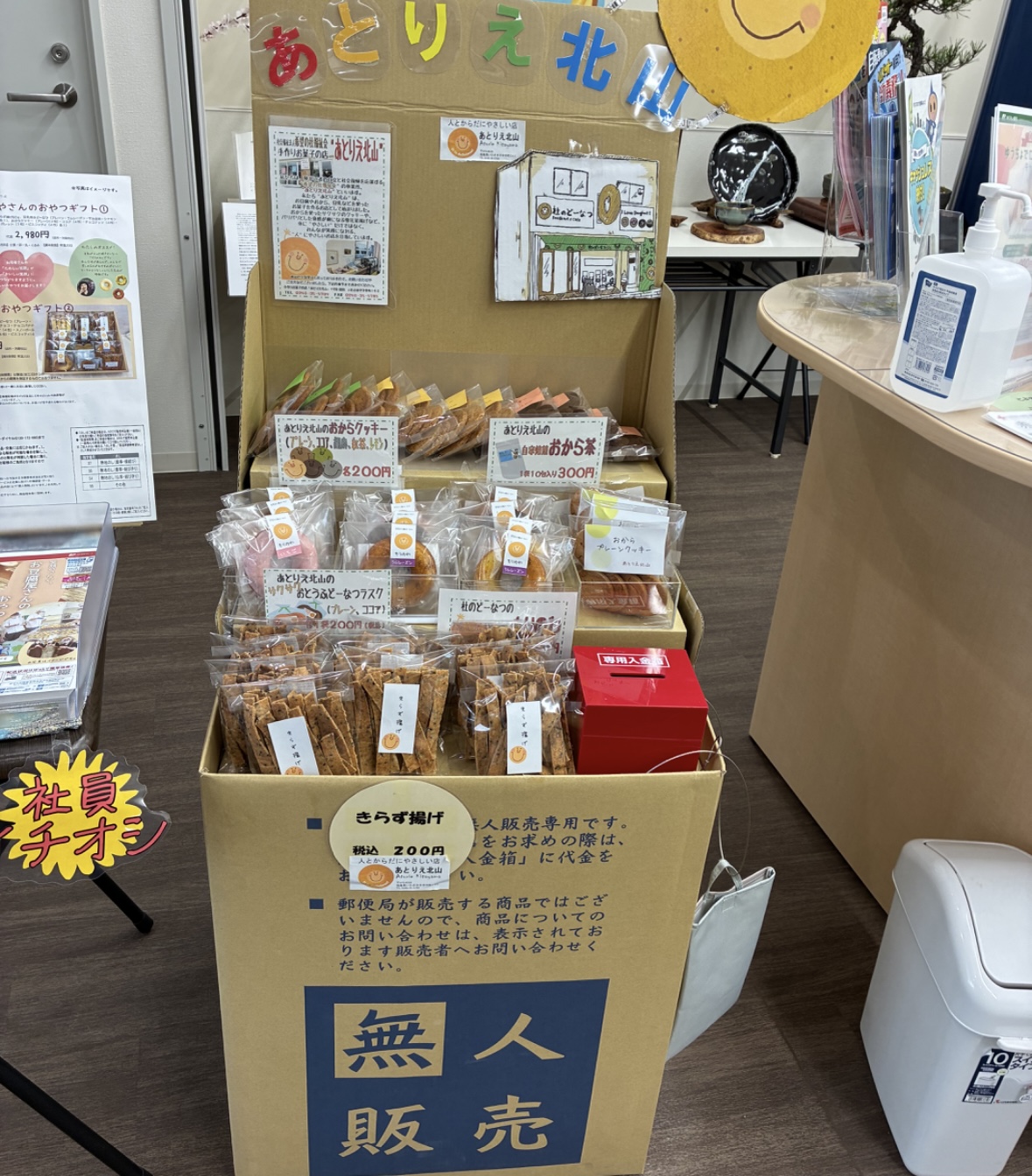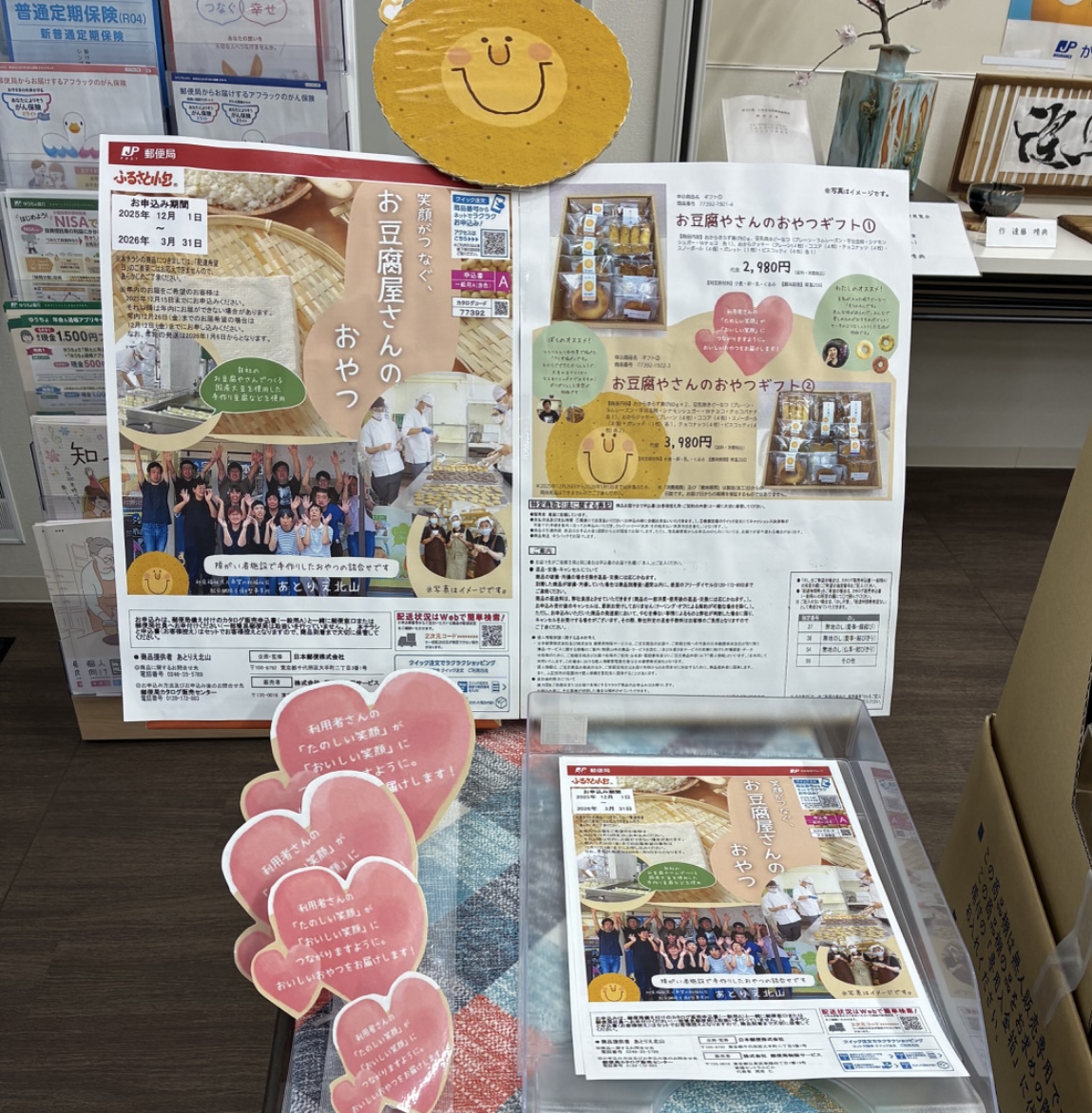 市内の、障がい者の皆さんが通っている「あとりえ北山」で作られたお菓子が、市内あちこちの郵便局で売られているそうです。