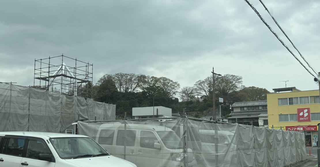 写真からは、すき家の特徴的な建物が建設中ということが分かりますね。