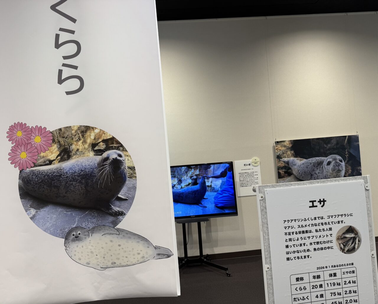 会場内では、アクアマリンふくしまに展示されているアザラシ達の生態について詳しく説明がされています。